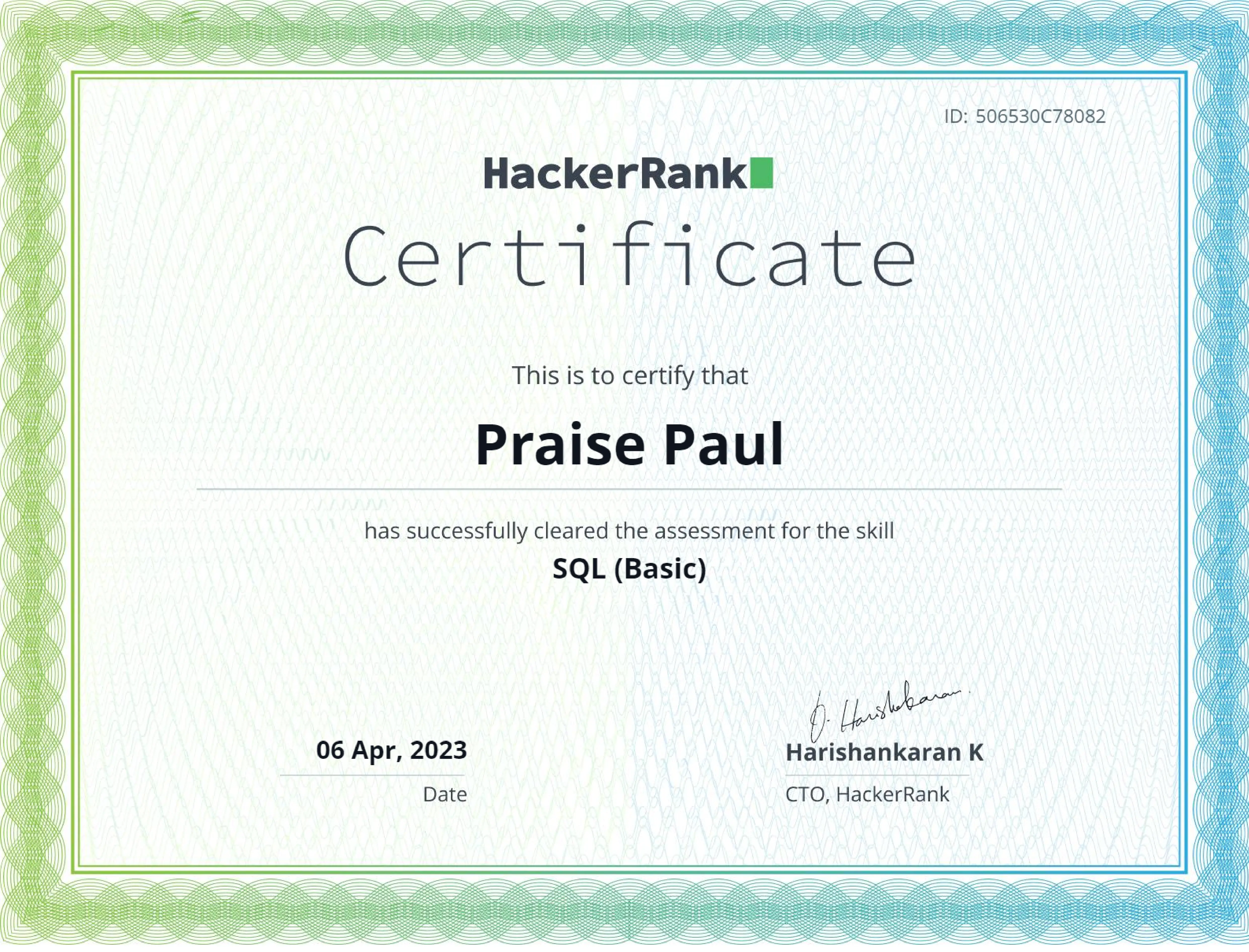 I have known Praise Paul since 2021 . He is an earnest, hardworking student who is a keen learner. He likes to explore different aspects on various subjects and fields out of his area of learning. Praise is diligent and honesty is one of his strengths. He is concerned about society at large and keen on giving back . He would do well as an intern and would be an asset to any organization he joins. He has done several interesting internships in the past. Praise has a pleasant and cheerful countenance.